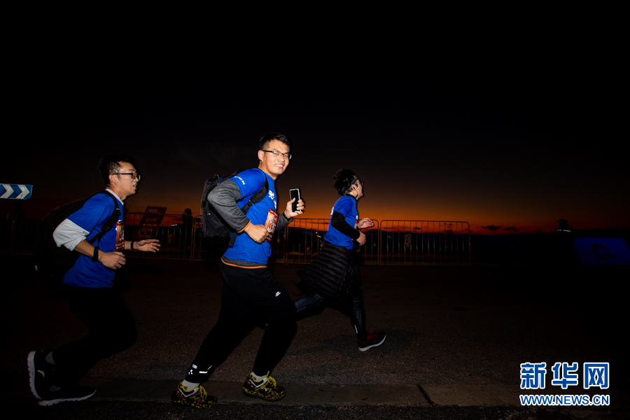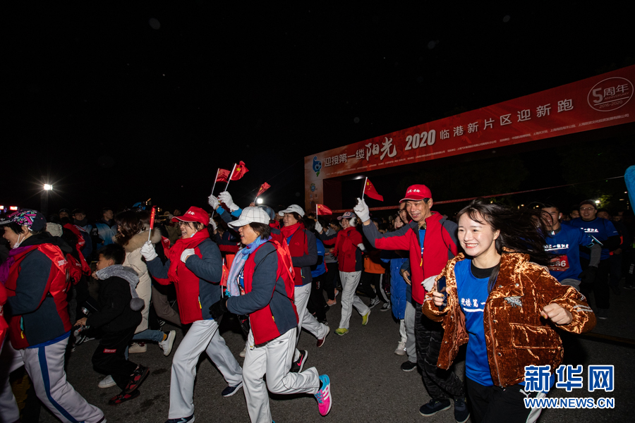 1月1日5:30,以夜空為幕,“迎接第一縷陽光——2020臨港新片區迎新跑”活動正式鳴槍起跑。新華網吳愷 攝