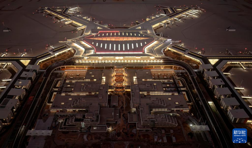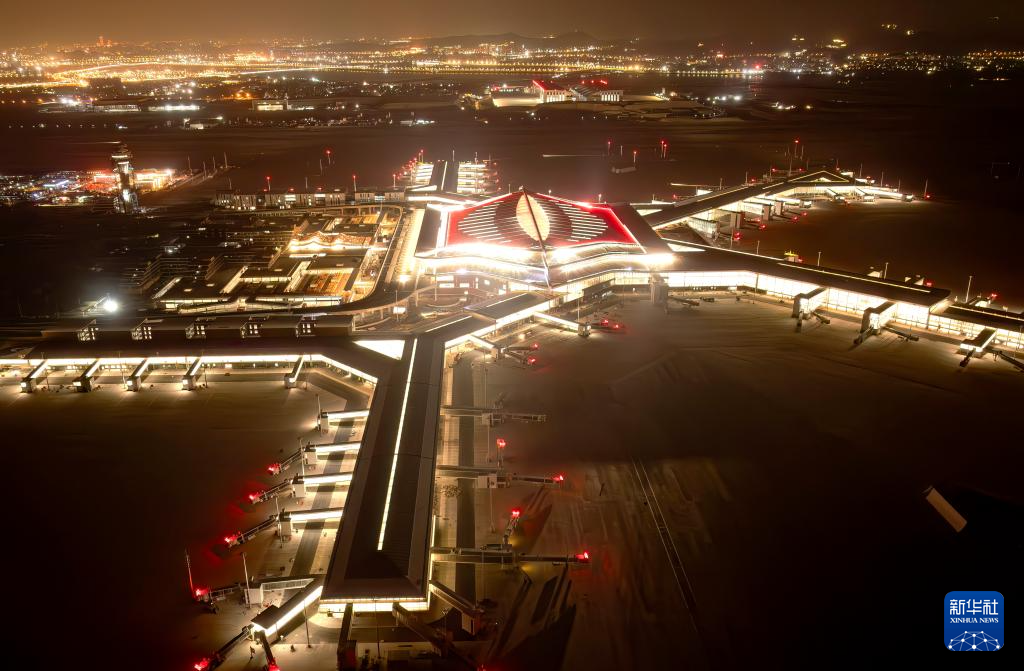 廈門翔安國際機場項目夜景(1月20日攝,無人機照片)。新華社記者 魏培全 攝