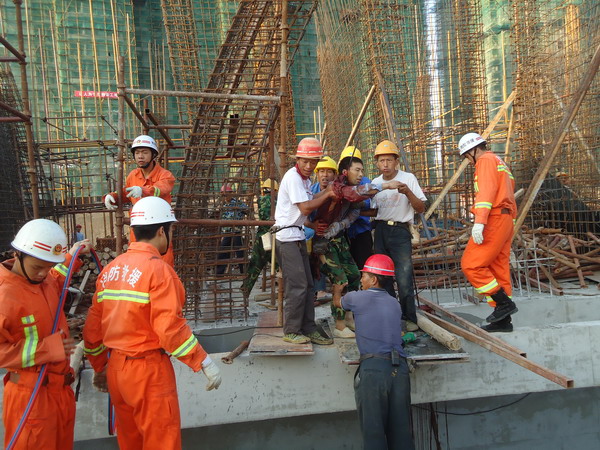 工人腳手架跌落鋼筋刺入頭部 消防緊急營救