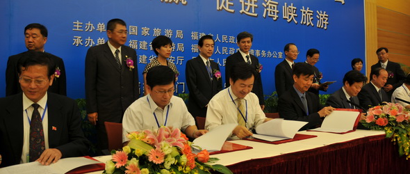 新華網廈門5月16日電(記者李慧穎)北京、天津、遼寧、上海、福建等大陸開放赴臺旅遊的25個省市16日在廈門舉辦海峽旅遊論壇,就大陸居民循“小三通”航線赴臺旅遊協作事宜進行探討,簽署了《打造“小三通”黃金旅遊通道合作宣言》。同時,閩臺兩地旅遊業還簽訂了《閩臺旅遊品質保障合作協議》。  詳細 >>  最新播報 >>