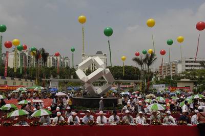 三聯水晶玉石文化村是龍崗區兩個分會場之一,在2004年前這裏還是經濟薄弱、制假販假的重災區,短短幾年時間,三聯就已變身年産值超2億元人民幣的水晶玉石之都,一躍而成為深圳社區的一顆閃亮明星。