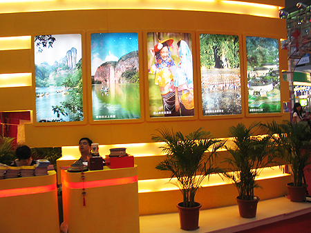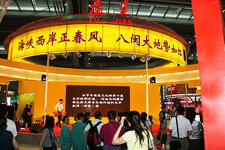 以福建土樓為原型的第四屆深圳文博會福建展區有一 幅楹聯氣勢磅薄,這幅楹聯寫的是:“海峽西岸正春風,八閩大地勢如虹”。也許正因有此氣勢,在本屆 文博會開幕當日,福建展團就收獲了僅6個項目簽約涉及金額就達7.88億元佳績。而這也反映了福建在文化創意産品上素以精品戰略為導向的精明。