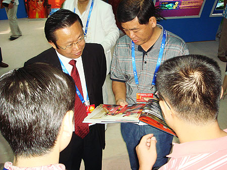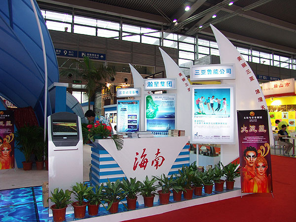 以“美麗海南、文化綠島”為主題的海南省展館,總面積270平方米。展館以藍色為主色調,利用海洋、貝殼、帆船、椰樹等特有的元素,經過造型藝術的創意,使展館體現了海南獨特的風格,並配以LED屏幕的精美流動畫面,視覺效果頗引人矚目。更為重要的是,透過這樣一個展區,觀展者可以感受到海南文化産業的發展,而借助這樣一個展區,海南的文化價值在文博會上得以升值——在參展期間,僅三亞市就簽約了“高端人才動慢畫培養、”“動慢産品聯合生産”、“國際動慢外包”等大小文化産業項目11個,投資涉及資金達4多億元。 [
