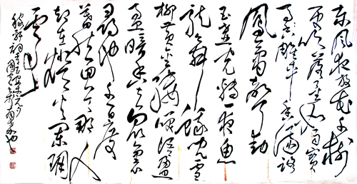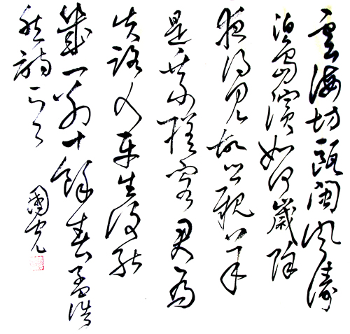 書法作為進階和非職業成份認識度開始轉變,經世之學逐步取代了以應用轉化為純藝術的書法,能夠體現士人的獨特性也淡化,逐漸消解,嘆為世之為用而不為虛。尤其這數十年來,社會價值取向有了不同取舍,對書法的士舍多于取,彰顯了書法脫離應用軌道,而獨專于藝術之林的時代必然。同時,非藝術專業成份的達士,在專業與愛好之間的選擇十分肯定地屬于放棄。士愛書法的風尚迫不得已地悄悄退去。然而在下江處卻有一位達士李國光,通經世之術,以運籌帷幄之外而移情于書法,在全國大展頻頻亮相,而獲中國書法家協會會員之佳名,是"兩手都硬"的新士人形象。國光書法以行草見長,師山谷、覺斯之法,除去了官衙之俗氣,煥發出洗煉之靜氣,抒寫脫去羈絆的心情,放手自然的胸襟,立馬登高,心邀太古,志存翰墨,周旋自我。取斯文在臨與創之間,行至樂于用與悟之得。