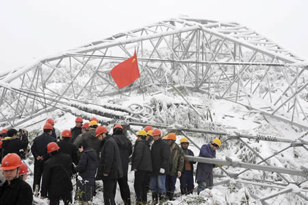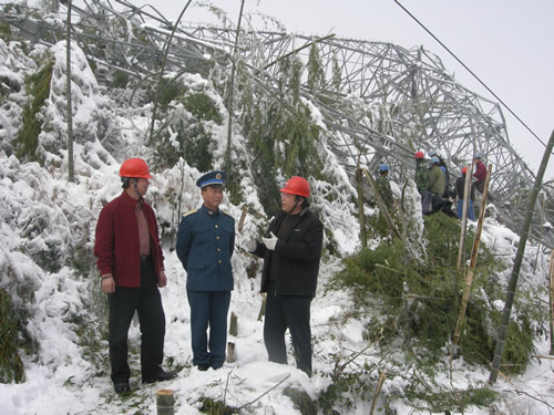 | 1月23日晚,省電力公司召開各市(州)供電公司、有關施工企業黨政主要負責人緊急會議。公司總經理湯文全宣布,全係統進入最高戒備狀態。湯文全要求, 各單位停止召開一切與生産保電無關的會議,集中全部精力做好抗冰保電工作。...[詳細報道] |