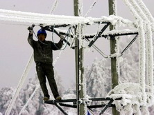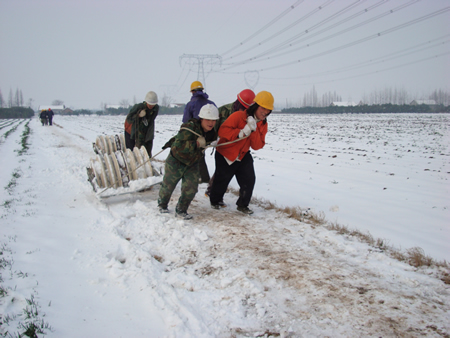| 輸電線路搶險,在冰天雪地中進行 |