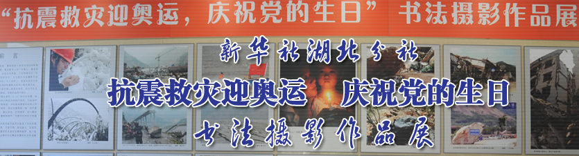 為了迎接北京奧運會,展現我國人民在抗擊2008年雪災、震災中的精神風貌,表達新華人的一份愛心,喜迎黨的八十七歲生日到來,新華社湖北分社機關黨委、工會特舉辦以"抗震救災迎奧運,慶祝黨的生日"為主題的書法攝影作品展。此次活動得到了分社廣大幹部職工、離退休老同志的積極響應和支持。 展出的69張攝影作品和21幅書法作品,是從已收到的數百張作品中精心挑選出來的,共分為抗擊冰雪、抗震救災、喜迎奧運、書法作品四個部分。