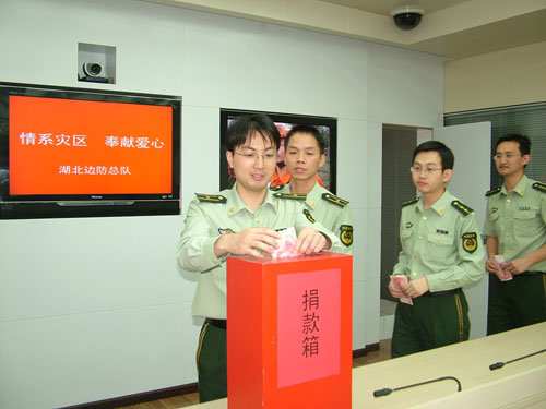 湖北邊防總隊組織官兵向地震災區人民獻愛心 (2008-05-14)