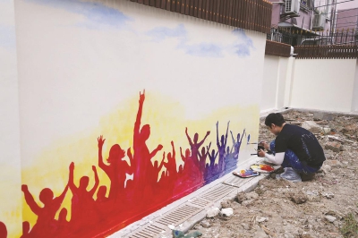 圖片説明:新涇六村在破解“上上下下”難題之余,也請來專業人士對圍墻外立面進行美化。
