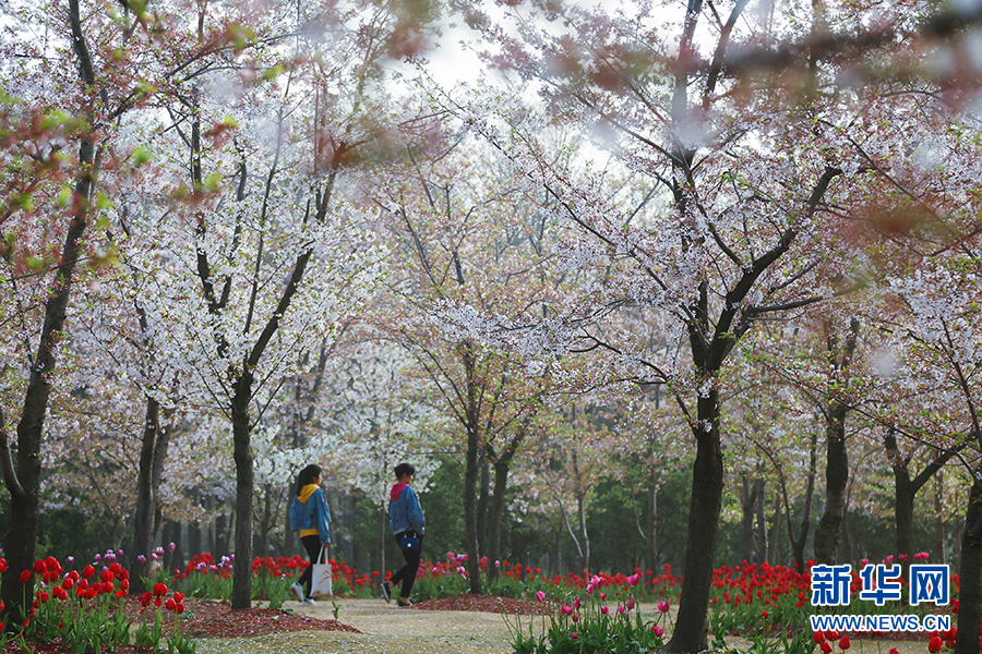 圖為清明小長假期間,遊客在顧村公園賞櫻。新華網發
