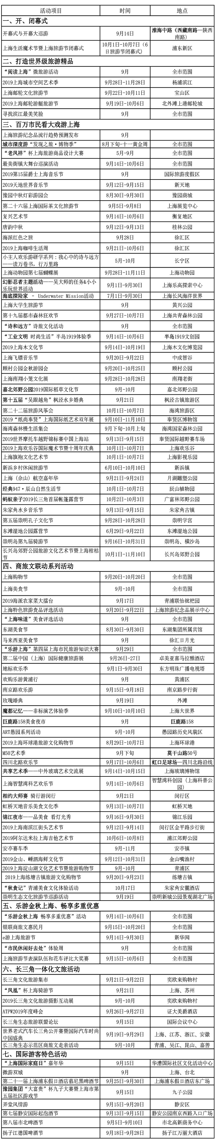 2019上海旅遊節活動一覽表
