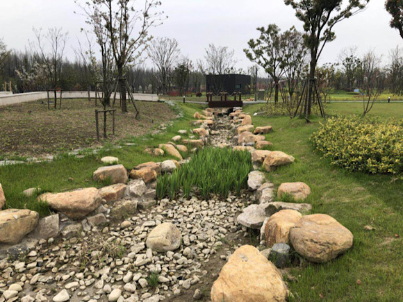 綠色、低碳、環保是蘆潮港公園的最大特色。據悉,蘆潮港公園佔地136畝,公園結合“海綿城市”綠色生態基礎設施構建。“公園的水全部採用內循環,不會增加市政管網的負擔。”上海臨港南匯新城經濟發展有限公司工程建設中心楊誠介紹,通過河道綜合治理、積水點改造等措施,將公園內的水匯總到景觀湖,實現重復利用,同時也解決了水體富營養化的問題。