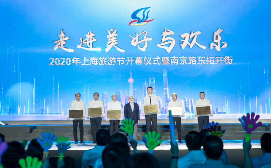 5位市民遊客代表共同啟動2020年上海旅遊節,並為南京路步行街東拓路段開街。新華網吳愷 攝