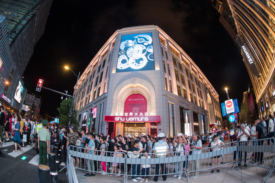 上海南京路步行街“長”長了 開街夜流光溢彩