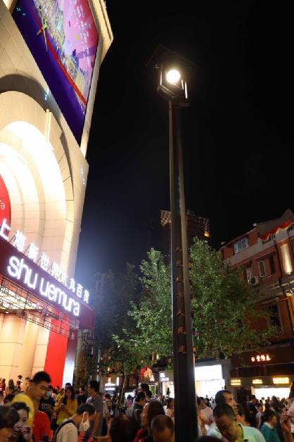 1882年,上海第一盞弧光燈,在南京東路靠近江西中路的地方亮起。開街當晚,在原址上復刻的“1882年路燈”被再次“點亮”。新華網 發