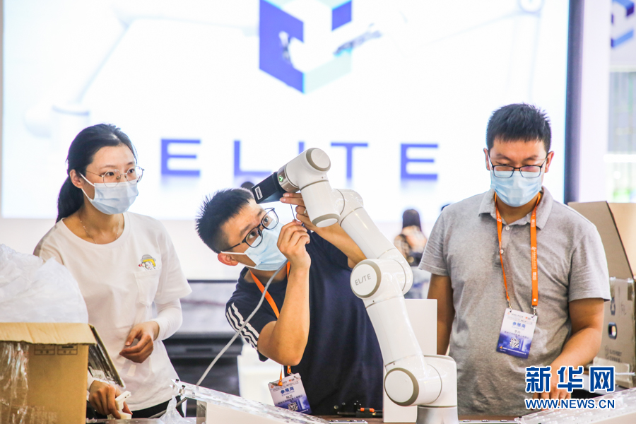 工作人員正在調試工業機器手。新華網吳一航 攝