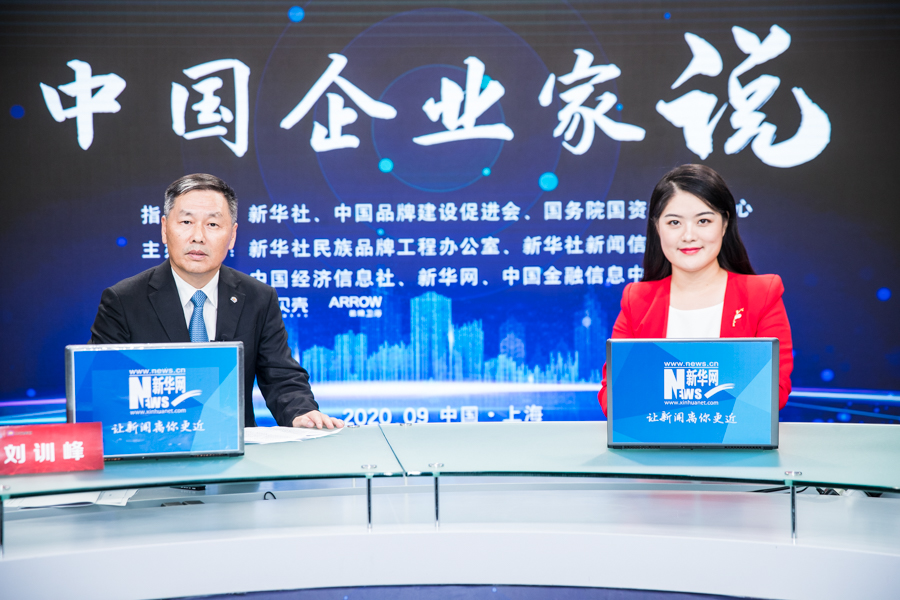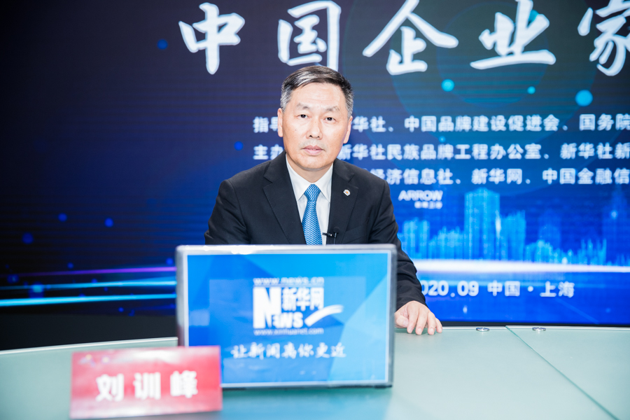 圖為華誼集團黨委書記、董事長劉訓峰接受新華網“中國企業家説”新華訪談。新華網 吳愷 攝