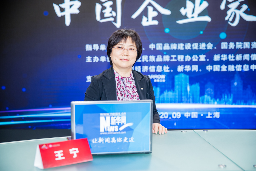 圖為華誼集團戰略發展部總經理王寧接受新華網“中國企業家説”新華訪談。新華網 吳愷 攝