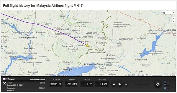 然而,出于尚未得知的原因,MH17航班的機長不顧烏克蘭民航當局于10天前發布的關于烏克蘭東部民航飛行禁令,飛躍了被劃為民航禁區且正在交戰中的頓涅茨克地區。當接近俄烏邊境時,被可能是烏克蘭軍方發射的山毛櫸導彈所擊落,機上295人全部遇難。