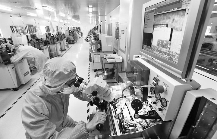 7月9日,坐落馬鞍山經開區的東科半導體有限公司技術人員在研發生産芯片。作為國內為數不多的集芯片設計、自主封裝與銷售于一體的國家高新技術企業,從2009年成立至今,矢志打造電源管理“中國芯”,芯片性能躋身國內一流。今年以來,該公司新取得1項發明專利、2項實用新型及10余項集成電路布圖設計專有權,産品暢銷國內市場,並出口到印度等國。1月至5月,公司産值近億元,同比增長30%以上。(特約攝影 王文生)