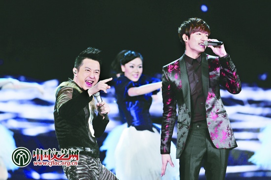 仔細看來,今年春晚以審美為己任的歌舞等節目雖然多了些,但不乏看點。舞蹈《萬馬奔騰》氣勢不凡,畫面壯麗宏闊,呈現了力量之美。黃渤的歌曲《我的要求不算高》,彰顯了小人物的夢想與追求,很接地氣。創意武術《劍心書韻》,弘揚了中華武術文化。阿寶、王二妮的歌曲《張燈結彩》,表現了陜北農村民俗文化,風格醇厚,載歌載舞,風味獨具。歌舞《英雄組歌》中的《萬泉河水》和《英雄讚歌》,以及芭蕾舞劇《紅色娘子軍》中的《練兵舞》,將觀眾拉回激情燃燒的革命年代,讓人們重溫漸行漸遠的紅色經典,其不俗的力量盡顯主旋律藝術的不朽魅力。孩子們表演的舞蹈《小馬歡騰》,凸顯馬年主題,活潑有趣,靈動率性。京劇藝術家們演唱的《同光十三絕》,唱響國粹京劇藝術,美輪美奐,響遏行雲。創意形體秀《魔幻三兄弟》神奇玄幻,魔術《團圓飯》表演吊詭奇妙,惜乎演員表演穿幫,乃美中不足。韓磊的歌曲《老阿姨》,謳歌當代楷模人物,頗具勵志作用。15歲小彩旗在現場數千觀眾和電視機前數億觀眾的見證下,持續旋轉4個小時,成為馬年春晚最具爆炸性的話題。因30年前春晚演唱《我的中國心》在內地揚名的香港歌手張明敏,馬年再上春晚,演唱《我的中國夢》,鮮明時代特色顯露無遺。匈牙利Attraction舞團的創意舞蹈《符號中國》,用人體造型再現中華大地的長城、黃山、大熊貓等文化符號,既養眼也養心,尤其是由一群外國演員演繹中國符號,其配圖也美妙,造型也逼真,觀後令人嘆為觀止、擊節讚嘆。法國知名女演員蘇菲·瑪索首上央視春晚舞臺,搭檔劉歡演唱法國民謠《玫瑰人生》,給人以浪漫美好的印象。韓國明星李敏鎬的青春風採,贏得青年觀眾特別是女性觀眾的一片尖叫聲,央視開門辦春晚的國際范兒經由這幾位外國演員的精彩演繹,得到再度凸顯。這一切,都彰顯了央視春晚“不失本調而兼眾調”的主旋律與多樣化統一之訴求。