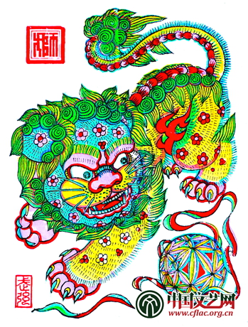 武強木版年畫《獅子》