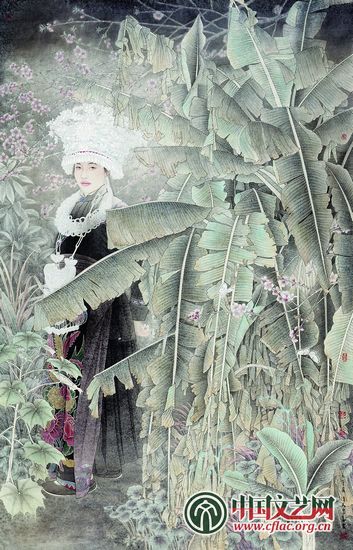 應該説,劉泉義對于真實性的描繪,提高了當代工筆人物畫的寫實程度,疏離了20世紀80年代風行的矯飾性甜俗意趣,他塑造的苗寨少女成為當代工筆人物畫少數民族形象的一種新樣式。