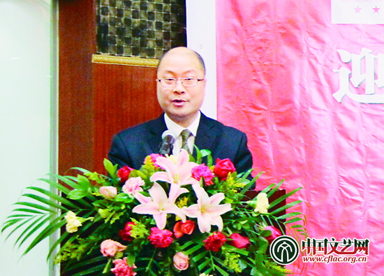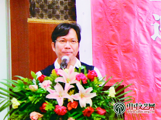 廣東茂名國際大酒店總經理潘海濤在楊留義山水畫展開幕式上致辭