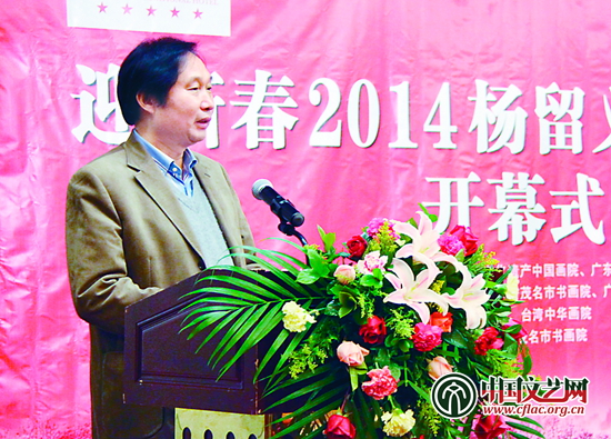 廣東茂名市書畫院院長廖靜在楊留義山水畫展開幕式上致辭
