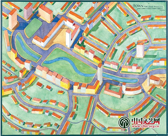 曾于1965年獲得奧地利國家建築最高獎的約瑟夫·弗蘭克的作品,描繪的是可容納2000個家庭的城鎮,創作于1950年
