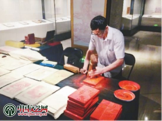 精美的《紅樓夢》人物圖樣,靈動飄逸的盛唐敦煌飛天,你若喜歡,現場就給你印制:選好底板,鬃刷上色,顏料是鮮亮的朱砂,覆以精選宣紙,均勻刷印,一幅藝術品立等可就。近日,在新開館運行的國家典籍博物館中,觀眾有幸一睹江蘇省雕版技藝代表性傳承人、揚州古藝齋雕版傳習所創辦人李江民的當代雕版印刷技藝,並可以在參觀之後帶走一份難得的雕版印刷藝術品珍藏。