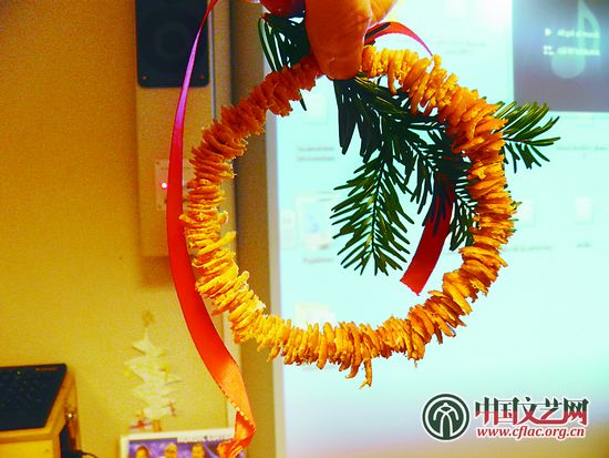 一位老師向筆者介紹當天的活動,8個“作坊”裏有做聖誕蠟燭的,有做橘皮圈的,有剪小天使的。一個小班的孩子們正在剪小天使,女孩居多,屋裏很安靜。而到了另一個“作坊”,則是截然不同的景象,大家都在做橘皮圈。其中幾個男孩一邊做,一邊比賽誰吃的橘子最多。一個男孩説他已經吃了8個橘子,另一個男孩馬上指著他説:“他去年吃了20個。”之後,一個男孩跑過來問中國的孩子怎麼過聖誕節,我便向他解釋,中國人有自己的節日,春節會和聖誕節一樣熱鬧。這時一個老師補充説,11月學校搞了一次“中國日”,學生們聽到過春節的故事。