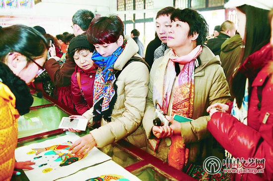 與會人員在楊家埠民間藝術大觀園了解年畫銷售情況 吳京南 攝