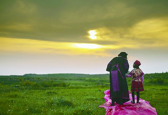 5月16日、17日,原創苗族舞蹈詩《巫卡調恰》亮相北京民族劇院。“巫卡調恰”是一句苗語,翻譯成漢語是“外婆的歌謠”的意思,作品總時長70分鐘,共分為“古歌”“不息”“呼喚”“幸福”“興旺”和“外婆的歌謠”六幕,參加演出的20名來自貴州黔東南黃平地區的演員中八成都是苗族。擔任總導演的青年舞蹈家龍阿朵表示,創作該舞蹈也是對苗族民間歌曲藝術的傳承與發展,她在當地挑選了具有潛力的舞者與歌者,對他們進行了近3個月的封閉式集訓。在她看來,“種”文化才是幫助他們的最好辦法。苗寨的孩子們,自小都是在外婆溫婉吟唱的神秘古歌中慢慢長大的。因此,“巫卡”(外婆)這個詞是具有溫度的,關于童年的很多抹不去的回憶也成為了她創作的初衷。她希望通過這個作品在民族傳承與現代表現之間尋求一種突破,讓觀眾在欣賞的過程中體味到流淌在每一位創作者血液中濃濃的鄉愁。