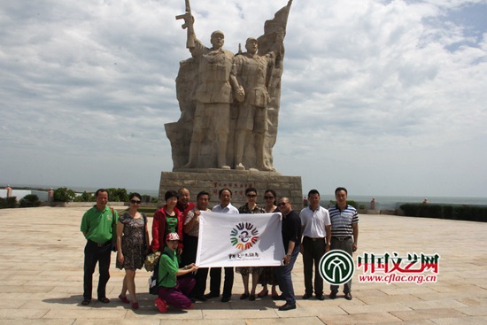 中國文聯黨組成員、副主席夏潮與海南省文聯領導參觀臨高角解放公園並合影。中國文藝網 蘇銳 攝