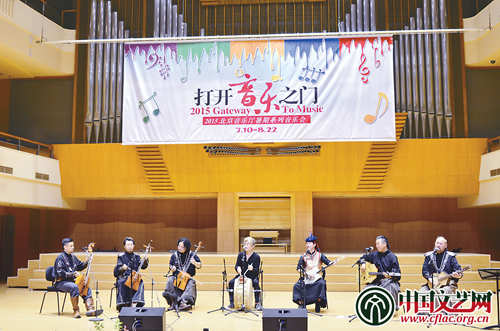 7月12日晚的北京音樂廳內,響起了悠揚的長調和厚重的琴聲。由七位蒙古族樂手組成的“音和思琴樂團”為觀眾帶來了一場充滿草原風情的音樂會。作為北京音樂廳2015年暑期係列音樂會“打開音樂之門”的係列演出之一,這場“生命之歌——音和思琴蒙古樂團專場音樂會”,以馬頭琴、火不思、口弦等傳統樂器,及長調、呼麥的獨特唱法貫穿著整場演出,樂手們更是以純熟的演奏、歌唱技藝贏得不絕于耳的稱讚與掌聲。在兩個多小時十幾首歌曲的演奏中,樂團展示了馬頭琴的豐富音色,火不思的洪亮渾厚,口弦的開闊空靈,還有呼麥的低沉和長調的悠揚舒緩,引領觀眾走入了內蒙古大草原。