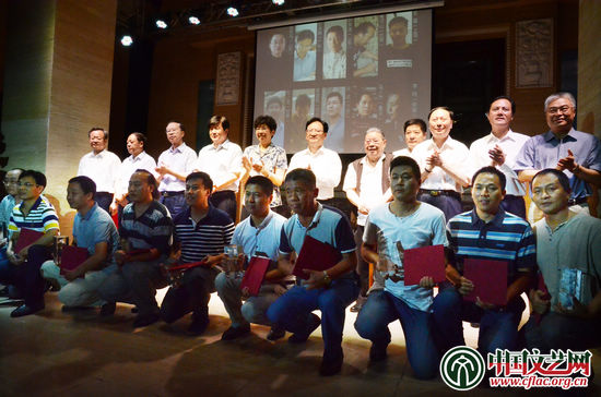 趙實、景俊海、李屹、楊志今、左中一、夏潮、李前光以及沈鵬、張海、李鐸等為獲得本屆書法篆刻作品展優秀作品的作者頒發證書,鼓勵他們立足傳統,潛心經典,磨礪求新,創作出更多文質兼美、藝文並重的優秀作品。