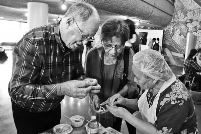 圖為李伯奇夫婦學習包餃子。王水平攝