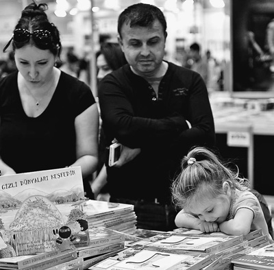 2014年伊斯坦布爾國際書展11月8日—16日在土耳其伊斯坦布爾舉行,來自40個國家和地區的850多家出版商亮相書展。圖為書展開幕當天一名小朋友被少兒圖書吸引。