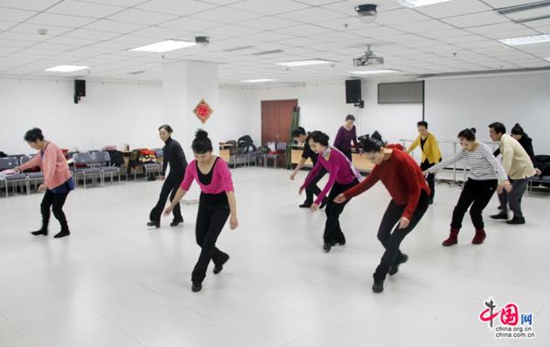 1月5日,中國首部老年人公益舞劇《紅舞鞋》的排練現場。中國網 郭永國 攝