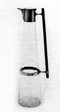 這個細長的紅酒壺的簡單幾何造型帶有明顯的德雷塞設計特徵,與那個時代濃重裝飾味道的風格形成了鮮明對比。德雷塞曾對日本裝飾藝術進行過研究,他和許多同時代較為進步的設計師都深受這種藝術的影響。酒壺上那根細長的直立手柄幾乎就是日本器皿上竹制手柄的直接翻版。像他所設計的許多其他金屬制品一樣,酒壺上的配件使用了電鍍金屬——19世紀末出現的一項技術革新,日趨壯大的中産階層因之得以享用曾經昂貴的銀質器皿。幾十年後工業設計中對機器美學的熱衷從它暴露的鉚釘和接縫設計中已經顯示出來。