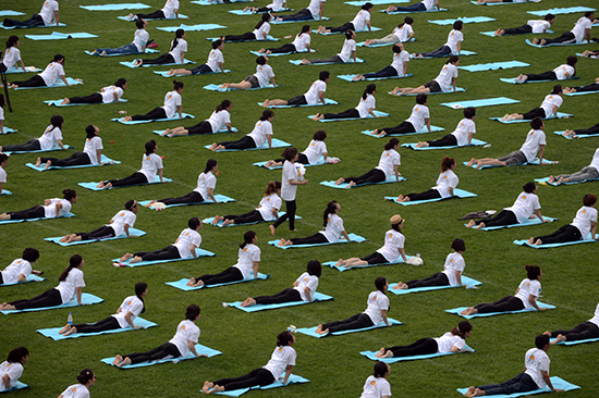 500人在北大齊練瑜伽 慶祝首個國際瑜伽日