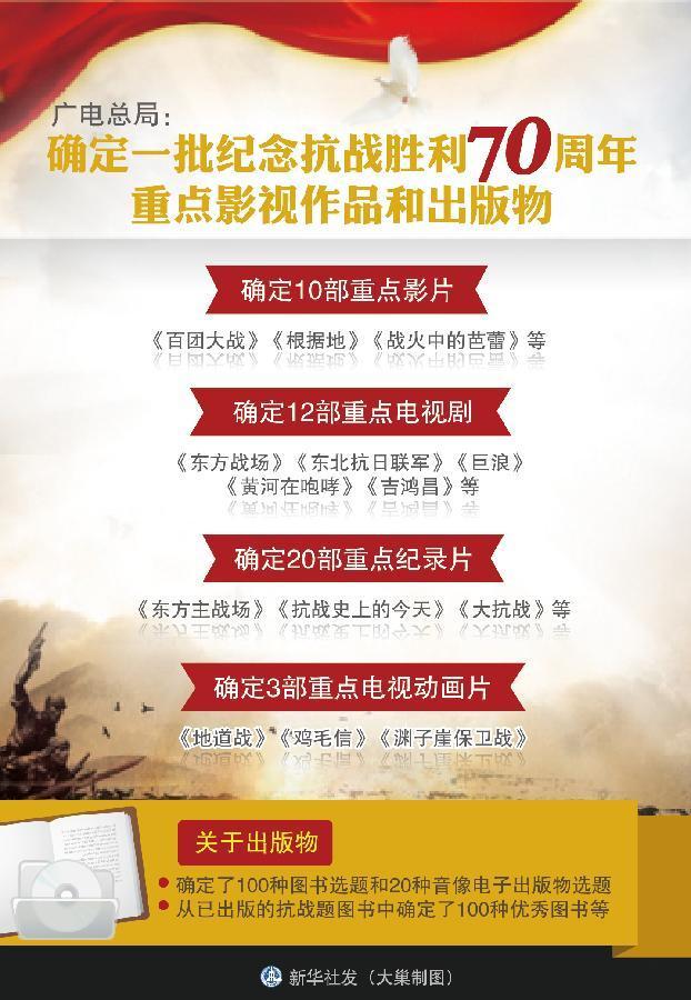 廣電總局:確定一批紀念抗戰勝利70周年重點影視作品和出版物 新華社發 大巢制圖