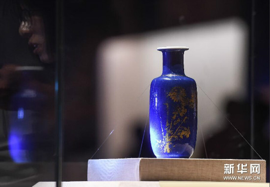 7月14日,觀眾在欣賞故宮博物院藏的“灑藍釉描金小棒槌瓶”。