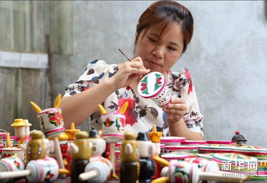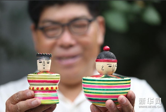 山東郯城木旋玩具是一種古老的傳統手工藝品,發源于山東魯南地區,俗稱“耍貨”。2014年,郯城木旋玩具被列入國家級非物質文化遺産保護名錄。郯城木旋玩具富有濃鬱的魯南鄉土氣息。其以長短不一、粗細不等的木材為原料,在旋床上先把木頭旋成各種毛坯,然後再經過打磨、上色等工序制作而成。玩具在圖案設計上多取材于民間神話、民間故事等,具有造型精巧、形象逼真、色彩艷麗、誇張傳神等特點。木旋玩具現已形成10大類、600多個花色品種,包括傳統的京劇臉譜、八仙花盤、虎頭棒槌、燕車、鳥車以及日用的雜貨、花籃、木碗等。目前,當地民間藝人還在不斷創新探索,讓這項傳統技藝發揚光大並不斷適應市場需求。新華網圖片 張春雷 攝