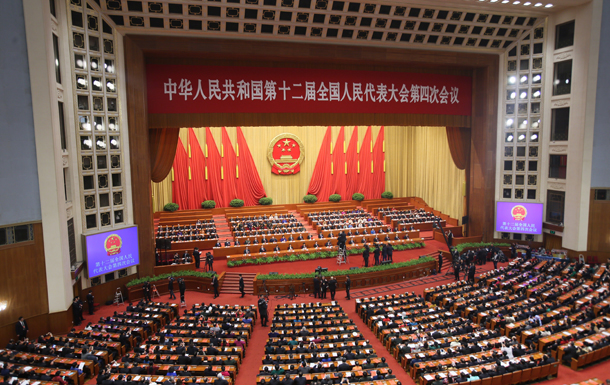 3月16日,第十二屆全國人民代表大會第四次會議在北京人民大會堂舉行閉幕會。 新華社記者張鋮攝
