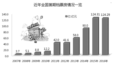據國家新聞出版廣電總局統計,今年暑期檔電影總票房達到124.29億元,同比減少0.38%,觀影人次比去年同期增長5.01%。其中,國産影片票房為63.36億元,比去年同期減少30.82%,國産影片份額比去年減少22.42%。暑期檔雖然上映影片數量超過百部,但市場表現平淡。