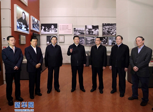 2012年11月29日,中共中央總書記、中央軍委主席習近平和中央政治局常委李克強、張德江、俞正聲、劉雲山、王岐山、張高麗等來到國家博物館,參觀《復興之路》展覽。新華社記者 蘭紅光 攝
