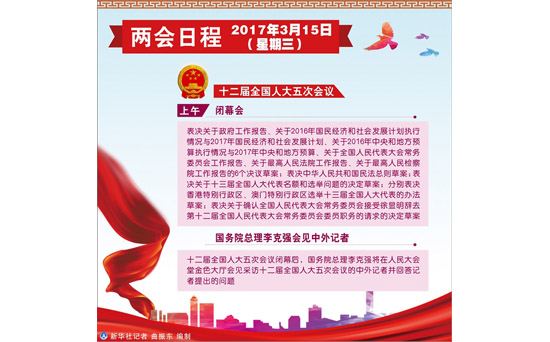 圖表:3月15日兩會日程 新華社記者 曲振東 編制