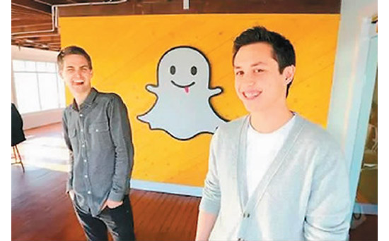 圖為色拉布聯合創始人埃文·斯皮格爾(左)和鮑比·墨菲。